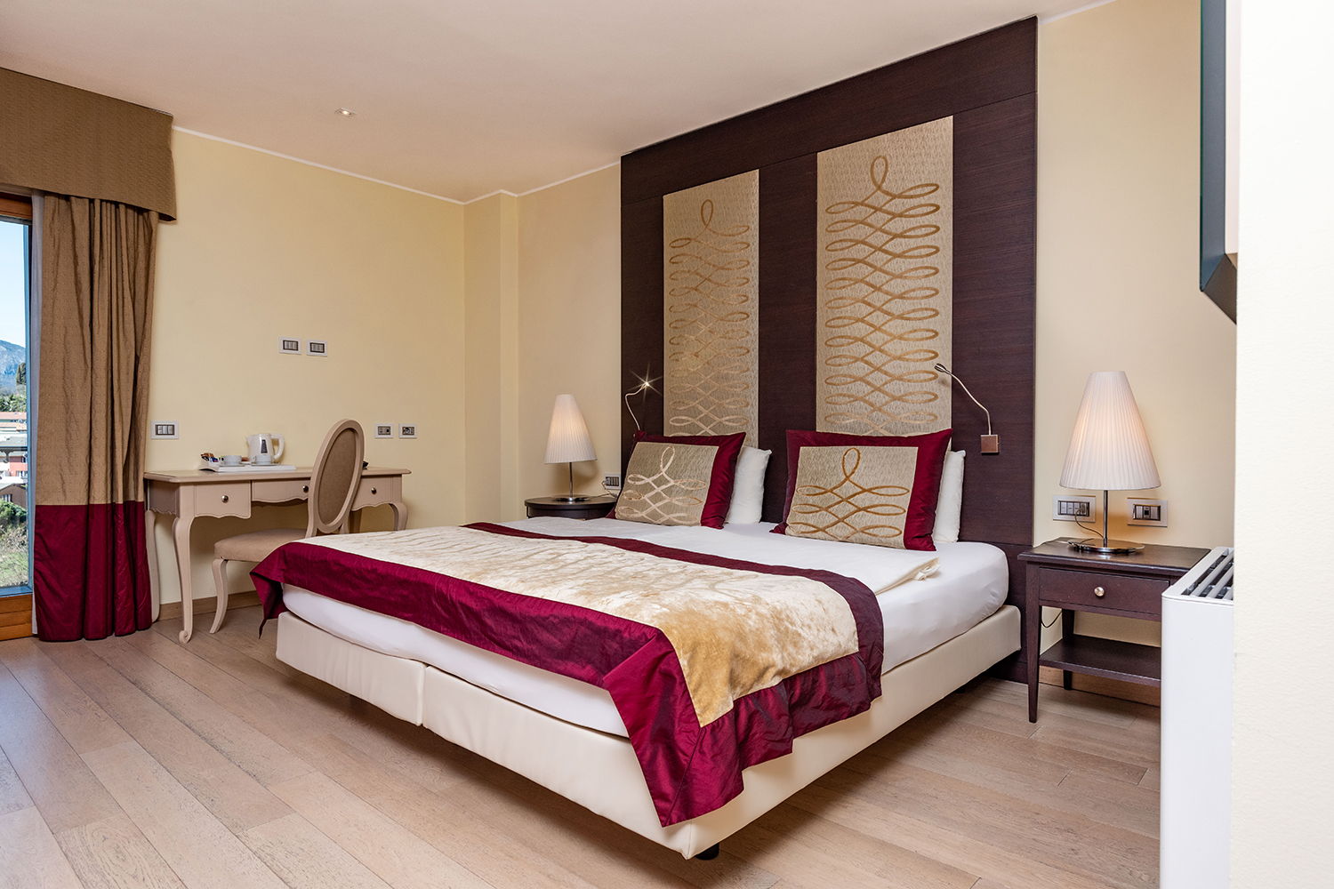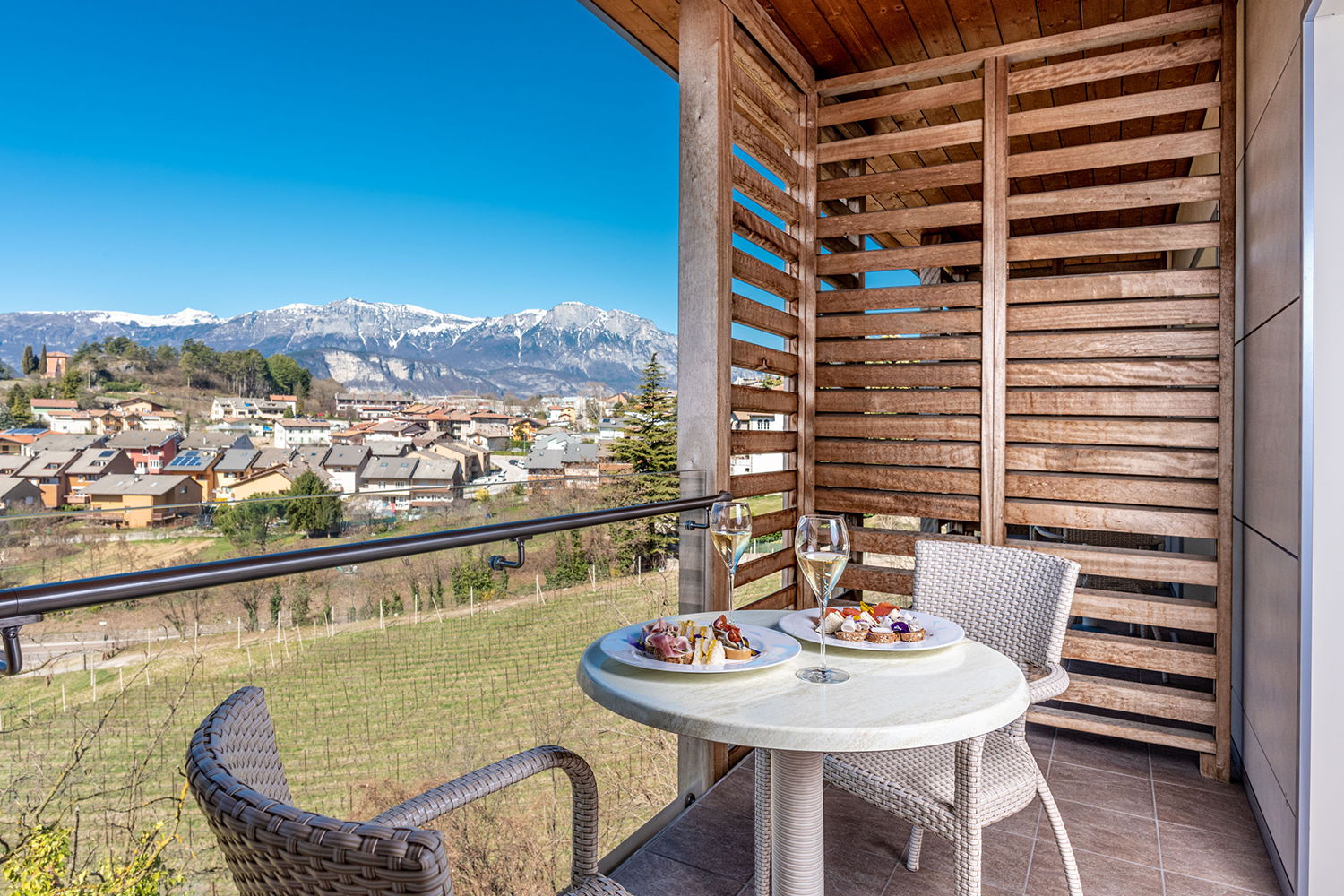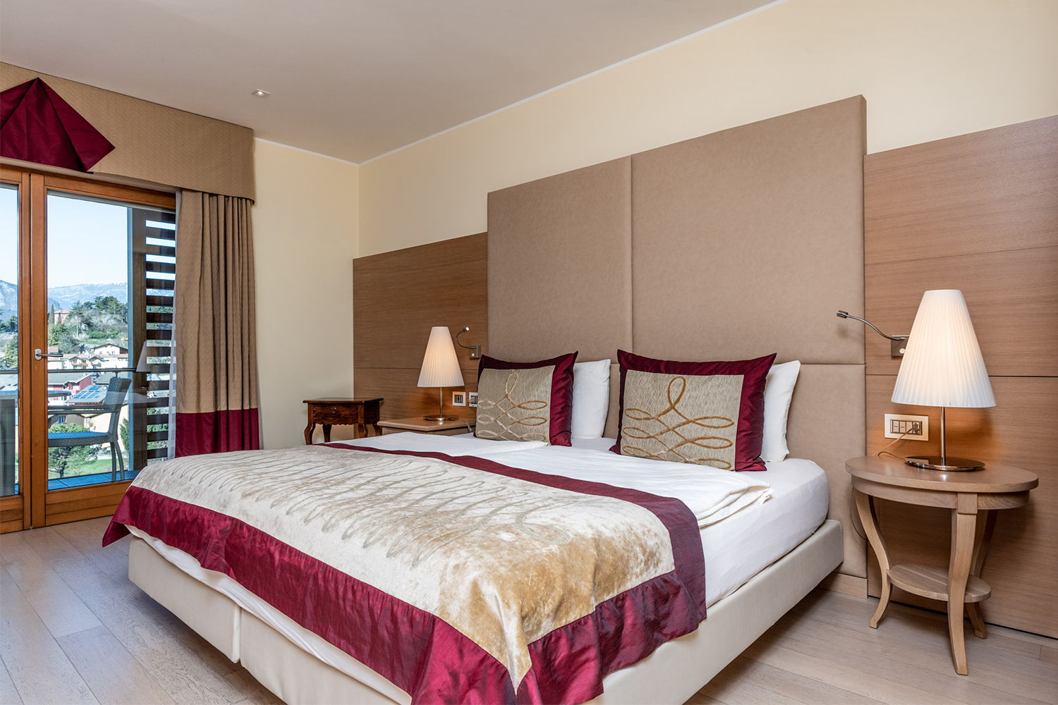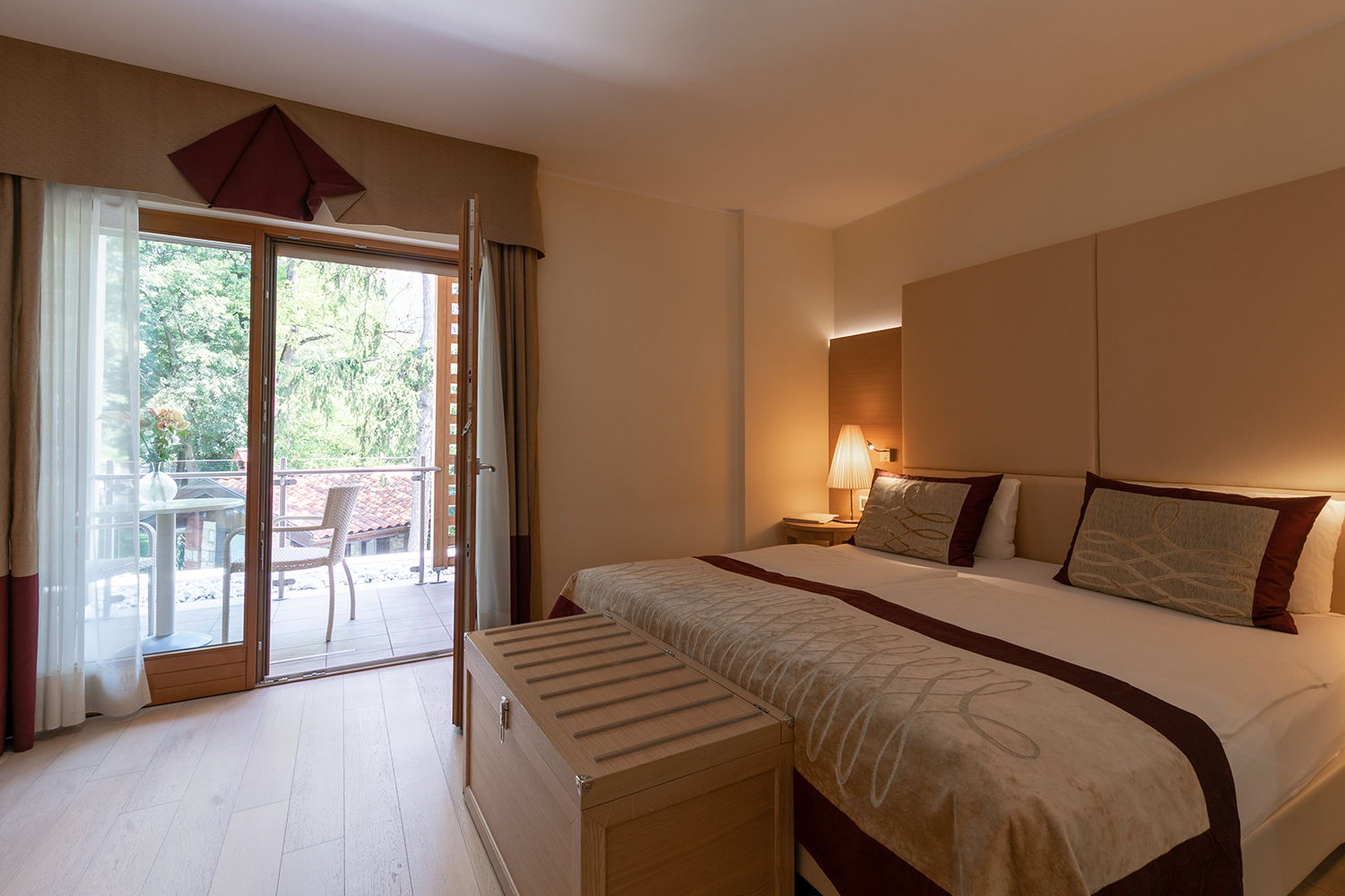 Nell’area Belvedere le camere sono spaziose e confortevoli, arredate con uno stile moderno ed elegante, ma in armonia con il gusto classico di Villa Madruzzo. Questa tipologia di camera è dotata di ampie e luminose finestre che conferiscono agli spazi respiro e calore. Tutte le Belvedere hanno un balconcino privato che si affaccia sul giardino o sul panorama collinare.