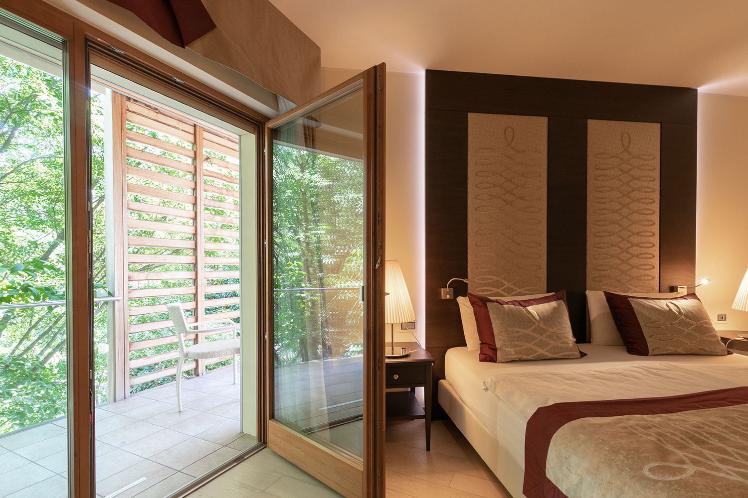 Le stanze Belvedere vi garantiranno un soggiorno di pace e relax: sono tutte insonorizzate e dotate di persiane oscuranti automatizzate. Inoltre, le camere hanno un comodo accesso all’area benessere dell’hotel, disponibile alla clientela su richiesta.
