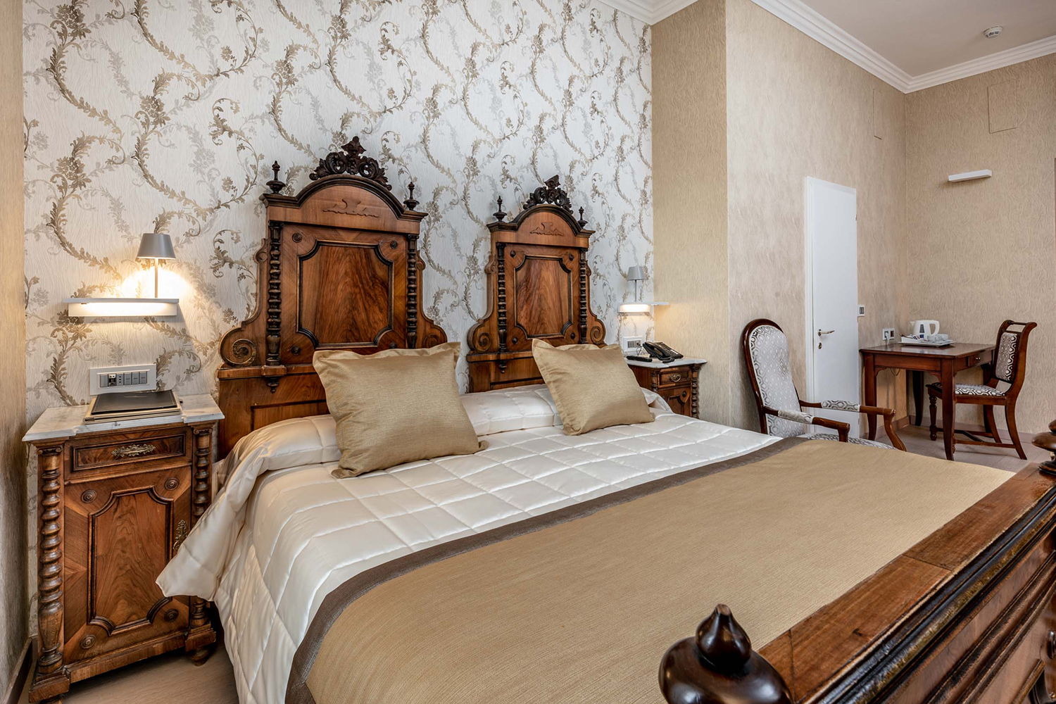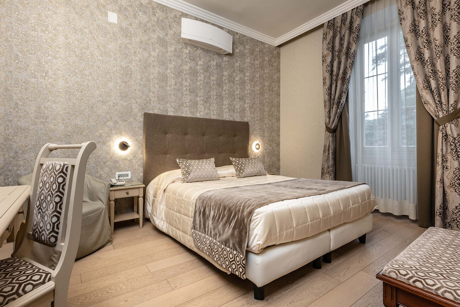 Le camere Madruzzo sono le antiche abitazioni della residenza e si trovano al primo piano della Villa, nella struttura storica e centrale dell’hotel: ambienti eleganti, arredati in stile, ma dove è presente il tocco intimo di luoghi che hanno vissuto la storia di una famiglia nobiliare.