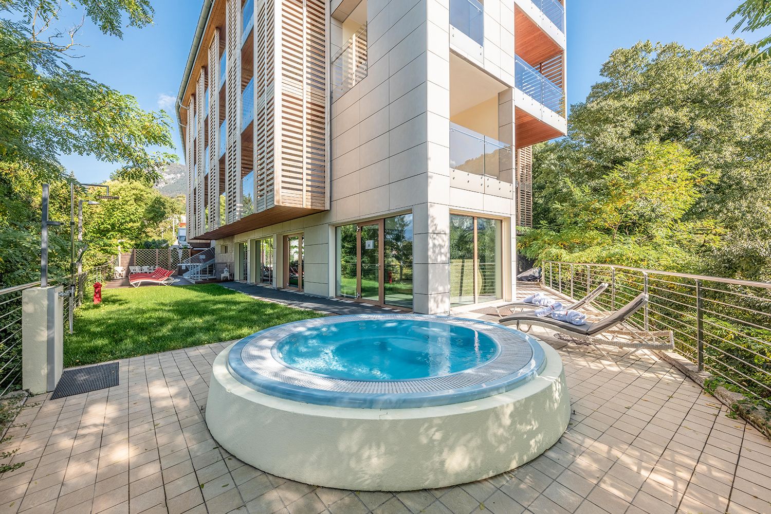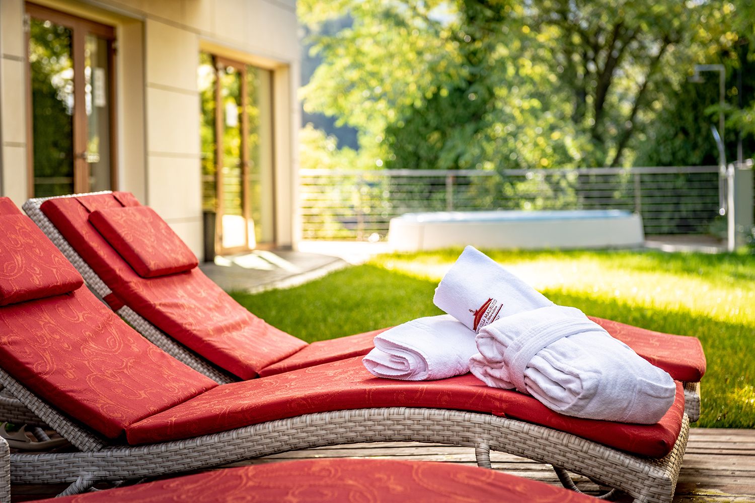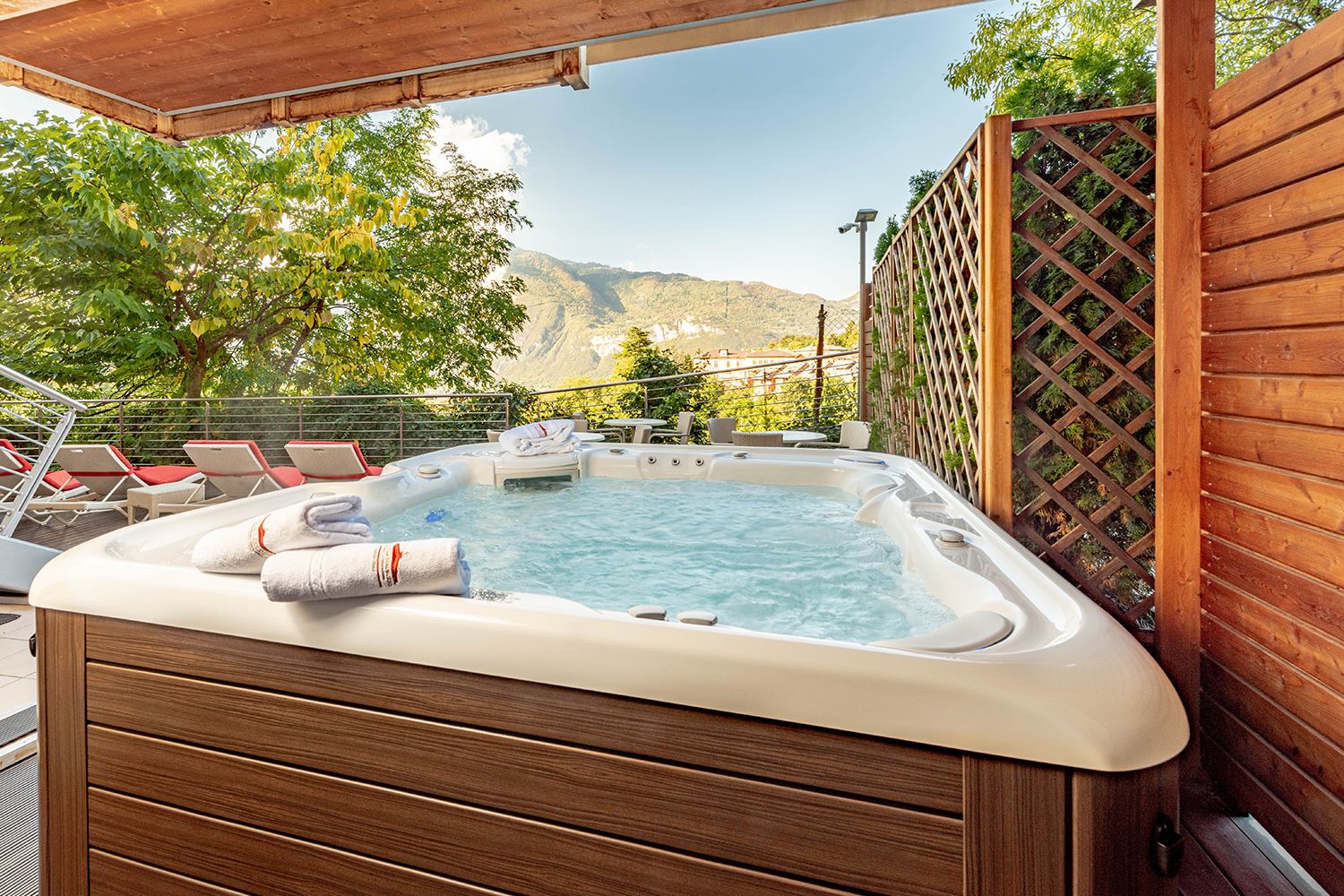 Durante la stagione estiva potrete lasciarvi tentare dalle nostre vasche esterne riscaldate: un idromassaggio circolare (temperatura circa 32°) e uno quadrato (temperatura circa 34°), estrambi particolarmente suggestivi poichè situati in un punto panoramico del giardino.