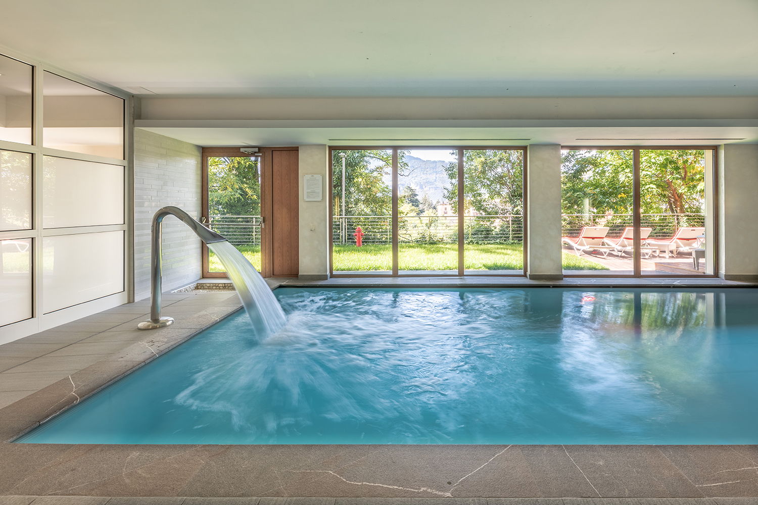 Nella nostra area relax, accessibile tutto l’anno, troverete una piscina interna (temperatura circa 30°) dotata di cascata cervicale, ottima per sciogliere contratture di collo e spalle. La piscina consente, attraverso una luminosa vetrata, una splendida vista sulle colline e sui vigneti della campagna trentina.