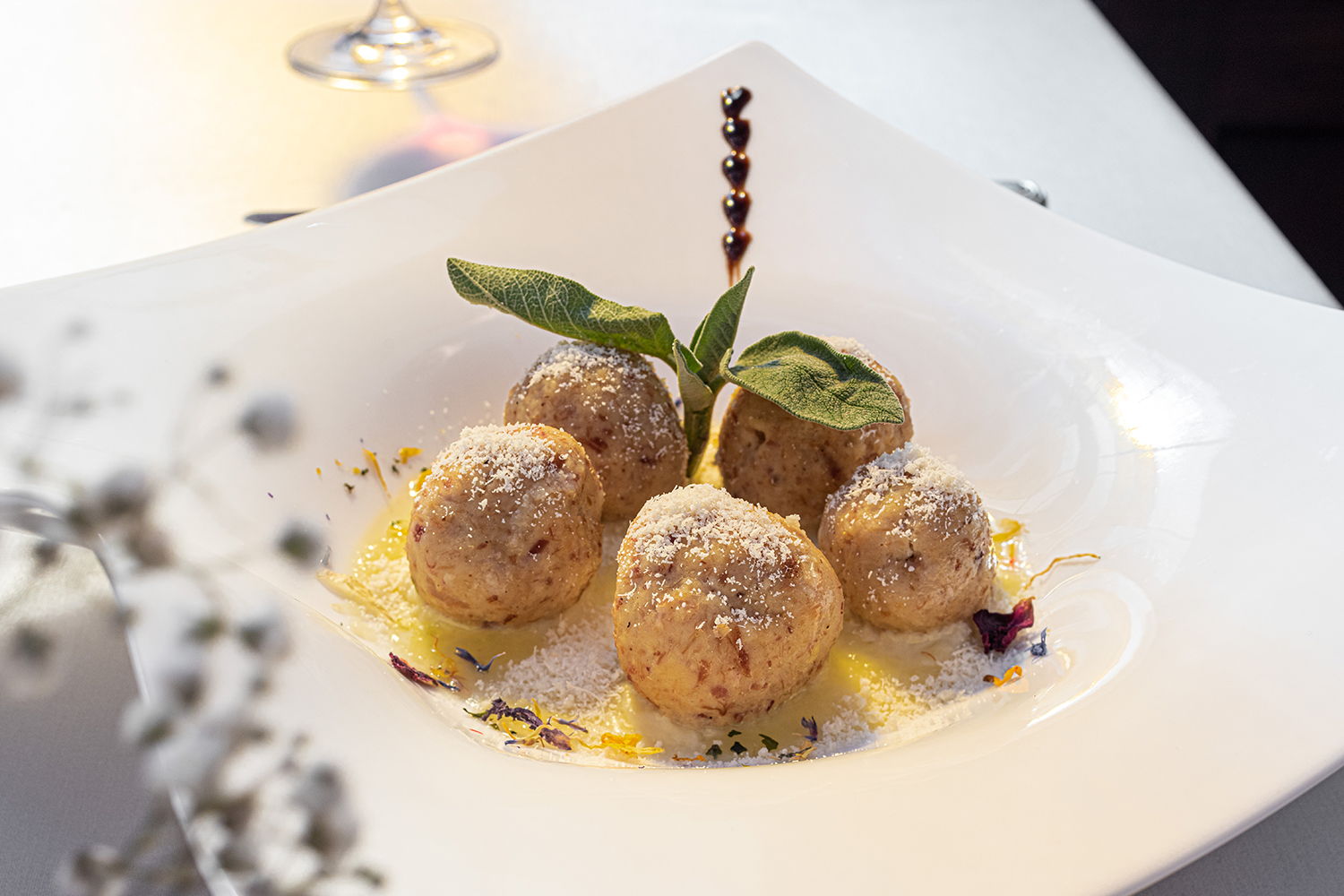 La valorizzazione dell’enogastronomia locale è da sempre uno dei punti di forza del Ristorante Villa Madruzzo. Grazie ad un’attenta selezione degli ingredienti e delle materie prime, alla riscoperta e rielaborazione di piatti antichi e allo studio dei migliori abbinamenti con i vini, il ristorante di Villa Madruzzo può definirsi uno dei principali portavoce della tradizione culturale e culinaria trentina.