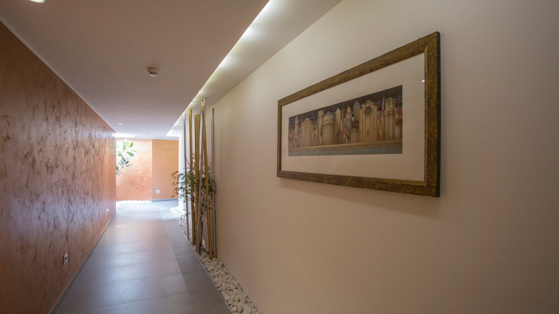 La Madruzzina Gallery, di recente costruzione, è una galleria realizzata per collegare le tre diverse aree dell’hotel: la Villa, ovvero il corpo centrale dell’albergo, la zona Classic/Garden e quella Belvedere, dove si trova il centro benessere.